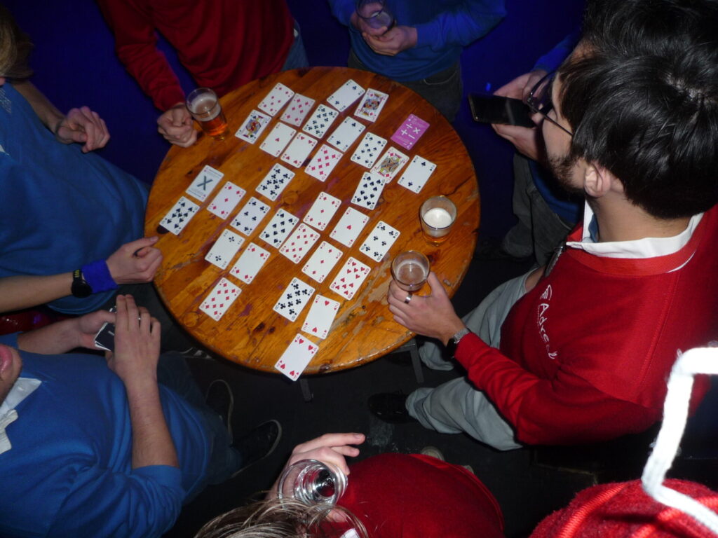 Op 20 oktober hadden wij een bijzondere activiteit op de planning staan, namelijk “Escaleren vóór het Dineren” samen met Adregé, zoals gekocht op de vlooienveiling (dus voor het goede doel!). Ons doel die avond: hen leren om goed te escaleren, met behulp van onze zelfbedachte drankspellen. En dat is zeker gelukt! Eerst twijfelden we of we samen een klein fustje gingen leegdrinken of een groot fust, maar opeens was die keuze al voor ons gemaakt: er was een groot fust aangesloten. En toen hadden we geen keuze meer, hij moest leeg.
